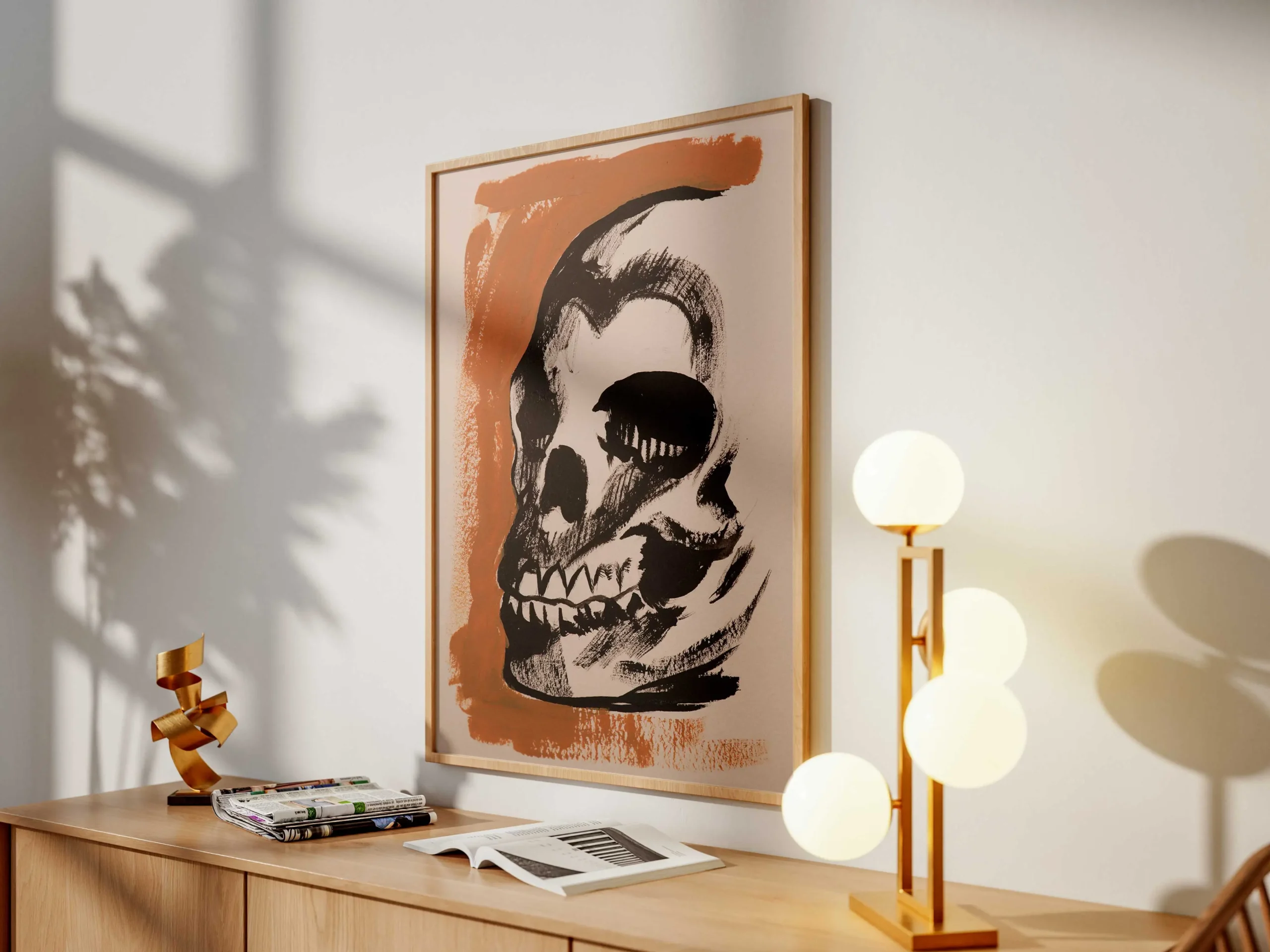 Printed on premium matte paper, this museum-quality print offers rich blacks and sharp details that highlight the blackwork style. The artwork is professionally framed in a minimalist wooden frame, ready to hang and perfect for studios, living spaces, or creative interiors.
